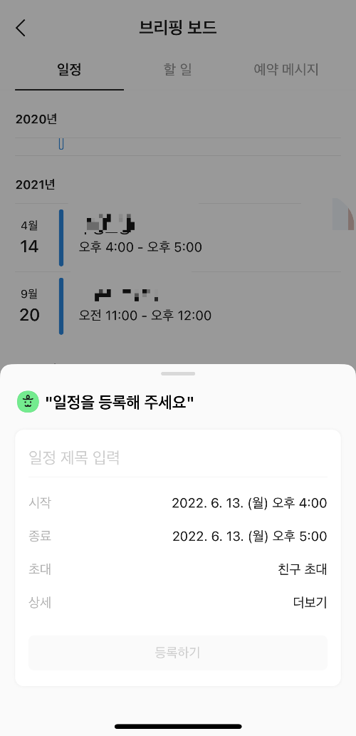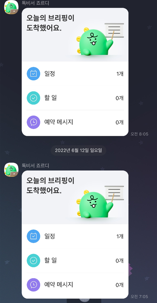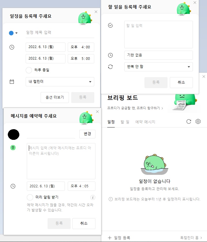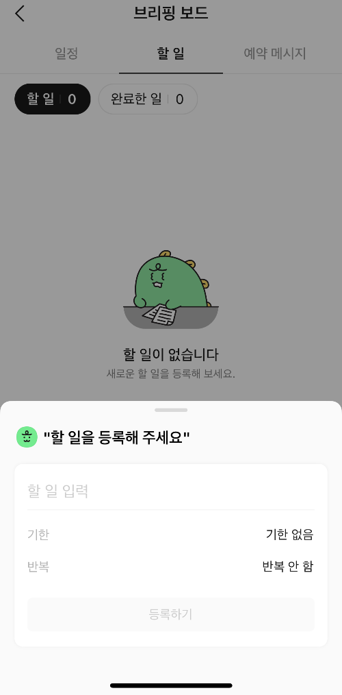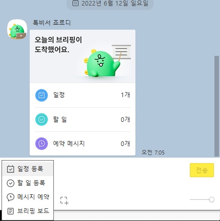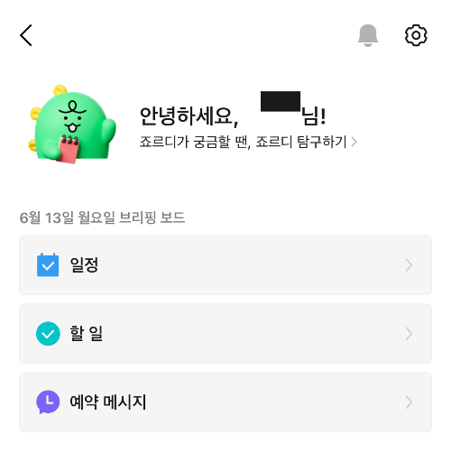 일정, 할 일, 메시지, 그리고 브리핑 보드까지 뜬답니다~!